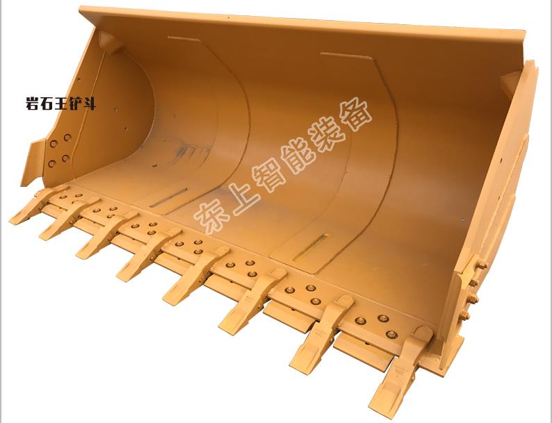 岩石斗:齿座板和侧刃板材料选用高强度耐磨钢,适用于挖掘混有较硬碎石的硬土、次坚石、风化石或坚石、破后的矿石的装载等重载作业环境。
