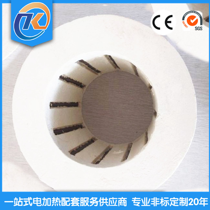 | 马弗炉陶瓷纤维加热模块 配套节能保温加热器  本厂产品涉及到非标定制,尺寸规格种类繁多,不同尺寸价格不相同,所以网页上的价格可能存在价格差异,订货前请务必咨询我们的销售客服或直接致电我们,我们会根据您购买数量和产品的规格来具体定价。 周工手机(微信):13382600729 产品名称:马弗炉陶瓷纤维加热模块 配套节能保温加热器 工作温度:1000℃ 规格:根据客户要求定制 生产周期:7-10个工作日(根据客户数量) 产品认证:ISO9001 SGS CE 马弗炉陶瓷纤维加热模块 配套节能保温加热器生产工艺配方采用品质方法,可以满足使用温度200℃-1700℃各种复杂结构的设计要求。 制品分硬制品和软制品。硬制品有一定的机械强度,可以用车、磨、钻、铣等加工手段加工。软制品有较大回弹率,使用方便,也可软硬制品复合达到理想的使用效果。 电阻丝(带)安装方法:1、全埋式 ;2、微露式 ;3、外露式;4、半露式;5、瓷管组合式;6、搁砖支撑式;7、单丝吊挂式 产品使用于冶金、机械、电子、陶瓷、玻璃、化工、大专院校、科研院所行业的各种工业炉窑。 1.产品说明: 纤维电热模块是采用特殊的加工工艺将纤维材料与电阻丝镶嵌组合,形成单个纤维质电热体,电阻丝布丝方式可分为“之” 型和“螺旋”型。成型方式可分为镶嵌式和埋入式。使用温度300-1300度, 由于它具有独特的优点,所以是传统电阻加热设备的理想替代产品。 2.产品特点: 高温稳定、低导热率、低热容、抗热震、抗侵蚀、安装使用方便。 3.产品应用: 管式炉、坩埚炉、圆弧状加热器、管道加热、箱式电阻炉、大型工业电加热炉各种异型电阻加热器。 陶瓷纤维模块系列: (1) 材料:1260,1400,1430度陶瓷纤维,其长期使用温度再500-1200度。 (2)镶嵌形式:电阻丝外露式,电阻丝微露式,电阻丝埋入式。 (3)加热元件:瑞典kanthal系列合金等,具体可以根据实际使用温度和客户要求来进行配置。 (4)规格,使用温度和材料均可按照要求定制;高温稳定,抗热震,抗腐蚀,低热容,低导热率。 马弗炉陶瓷纤维加热模块 配套节能保温加热器的特点: 莫来石纤维受热时容易膨胀均匀,热导率低,在高温下不容易变形,所以能够保持良好的弹性,收缩也比较小,且材料本身化学稳定性好,不易受到腐蚀。莫来石的组成特点是氧化硅、氧化铝二元体系中,能够在常温常压下稳定存在的二元 为3A1203·2Si02,莫来石纤维是一种多晶结构的纤维。 氧化物陶瓷纤维的用途 1、硅酸铝纤维用途。硅酸铝纤维复合材料可以制成毯、毡、纸、板等形状,目前已广泛应用于化工械等热能设备的保温及发动机部件的隔热层等。 2、莫来石纤维用。作为新型超轻质高温耐热纤维材料,因其收缩性好,化学性质稳定,不易受到腐等优势被广泛用于各种高温产品及热防护系统中。 3、氧化铝纤维用途。短氧化铝纤维主要用于高温绝热材料,而长纤维可以用于增强复合材料,另外氧化铝纤维在军工、航天上具有很大的作用。 陶瓷纤维板即为硅酸铝纤维板,一种耐火材料。即使在加热后也保持良好的机械强度,该产品较纤维毯、毡是刚性并具有支撑强度的纤维隔热产品。 制作原理 采用喷吹纤维(纤维短,细,容易打碎混合)作为陶瓷纤维板的原料,加入一定比例的结合剂、填料级助剂,经过打浆机,在配浆池中充分分散成浆料。用泵打入成型池中,并用压缩空气搅拌。将模具放入成型池,利用抽真空的原理,使纤维浆料吸附于模具上。控制吸附时间,对纤维湿料进行真空脱水,脱模,置于托盘送人干燥炉干燥10-24小时。烘干后的纤维板通过专用的磨削机,切边机,控制尺寸。 】