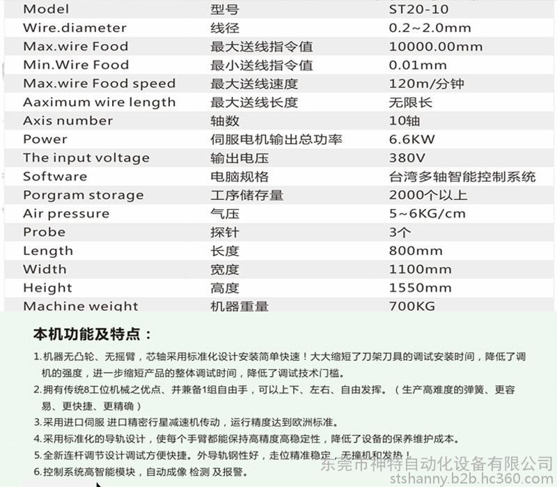 本网页所展示的有关【神特ST20-10 多轴多功能电脑弹簧机 数控线材成型机_数控万能弹簧机_东莞市神特自动化设备有限公司】的信息/图片/参数等由弹簧网的会员【东莞市神特自动化设备有限公司】提供,由弹簧网会员【东莞市神特自动化设备有限公司】自行对信息/图片/参数等的真实性、准确性和合法性负责,本平台(本网站)仅提供展示服务,请谨慎交易,因交易而产生的法律关系及法律纠纷由您自行协商解决,本平台(本网站)对此不承担任何责任。您在本网页可以浏览【神特ST20-10 多轴多功能电脑弹簧机 数控线材成型机_数控万能弹簧机_东莞市神特自动化设备有限公司】有关的信息/图片/价格等及提供【神特ST20-10 多轴多功能电脑弹簧机 数控线材成型机_数控万能弹簧机_东莞市神特自动化设备有限公司】的商家公司简介、联系方式等信息。