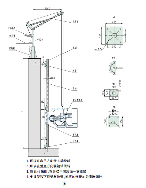 QJB 型潜水搅拌机主要由潜水搅拌机主机、安装系统及电控设备组成。