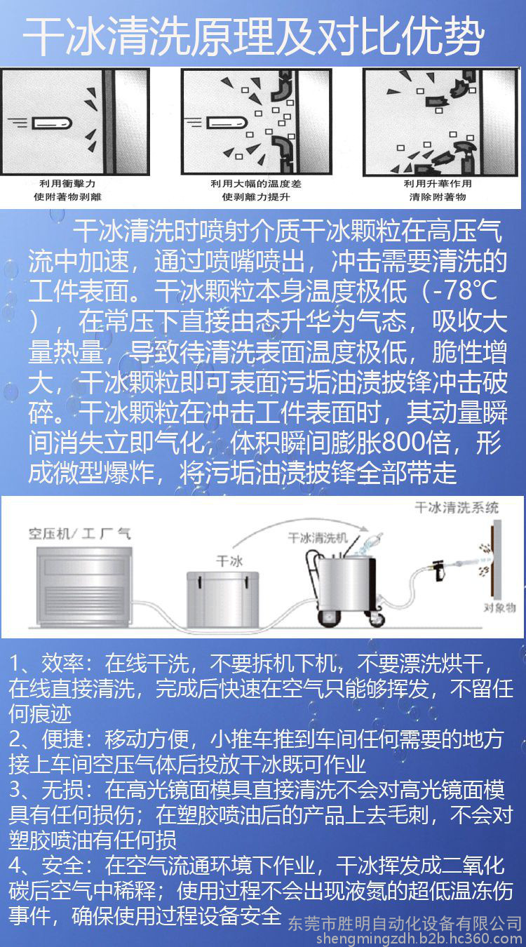 胜明干冰清洗机模具水路清洗机特点和优点: