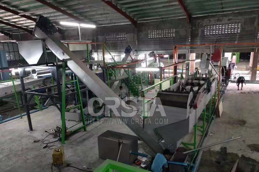废塑料外壳家电处置破碎清洗脱水片料流水线。