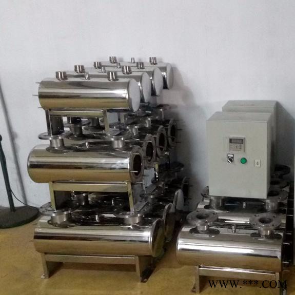 由主机产生电磁场和超声波作用于水系统管路上,使管道内水分子产生共振,把氢键缔合的水分子团变成单个的极性,改变了水的活化性,这些极微小的水分子可以渗透、包围、溶解、去除系统中的老垢提高了水分子对钙镁离子、碳酸根离子等成垢组分的水合能力,起到阻止水垢形成的作用。同时,在电磁场和超声波的作用下,使原有的水垢结晶逐渐变得松软、脱落、溶解,从而达到除垢之目的。 ?2.防腐防锈?氧化腐蚀和垢下原电池腐蚀是水系统管道及设备腐蚀和生锈的主要原因,而在电磁场和超声波的作用下,水垢得以控制和去除,溶解氧与水分子结合不易析出,从而抑制氧化腐蚀和垢下原电池腐蚀的发生起到良好的防腐阻锈的作用。?3.杀菌灭藻?电磁场在工作时产生微电子流使细菌、藻类赖以生存的环境被破坏,并且溶解氧在电磁场和超声波的作用下形成一些如O3、H2O2等对细菌、藻类具极强杀伤力的物质,起到杀菌灭藻的作用。 其一,地球上的生物一般只适应地区表面的电场强度(130V/m),该处理器改变电场强度,改变或影响细菌的生理代谢,如基因表达程序、酶活性等**导致细菌死亡。 其二,细胞膜有许多对外联系的离子通道,离子通道的调节直接影响细胞的功能和生命。处理器产生的外电场破坏了细胞膜上的离子通道,改变了调节细胞功能的内控电流,影响细菌的生命。同时形成强电场产生的高速运动的电子将细胞致死,达到杀菌的目的。 其三,电场处理水过程中,溶解氧得到活化,超氧阴离子自由基、羟基自由基、过氧化氢、单线态氧等活性氧。活性氧对微生物机体产生作用,造成有机体衰老,直至死亡。