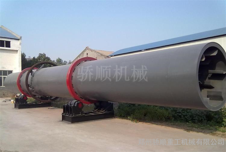 烘干机筒体前后有两个轮带,其中一个烘干机轮带带有10度斜度与烘干机挡轮配合使用,防止烘干机筒体上下串动。烘干机轮带的主要作用是把筒体支撑在托轮上。把筒体和物料的重量传递给托轮支承装置,并能使筒体在托轮上平稳地转动。烘干机筒体加物料加烘干机大齿圈少则几吨,多则几十吨,因此烘干机轮带要有足够的强度和耐久性。烘干机大小不一,所需烘干的物料的性质不尽相同,因此烘干机轮带的大小、结构也有所区别。