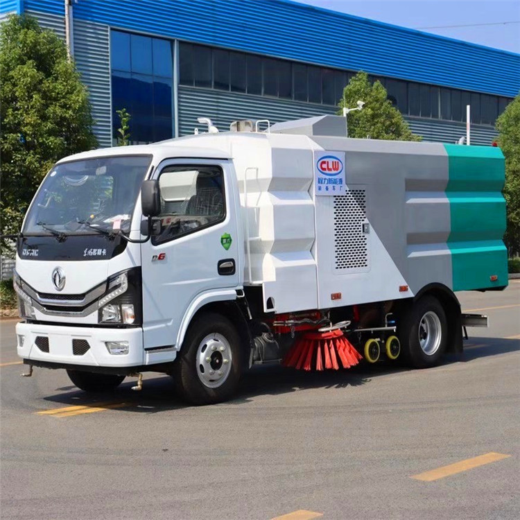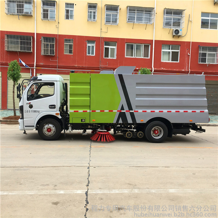 该洗扫车采用国六东风多利卡二类底盘改装,加装副发动机、风机、清水箱、垃圾箱、左右立扫、扫盘降尘系统、左右高压侧喷高、吸盘内置高压主喷杆、气动系统、液压系统、专用装置电控系统和副车架等改装而成。
