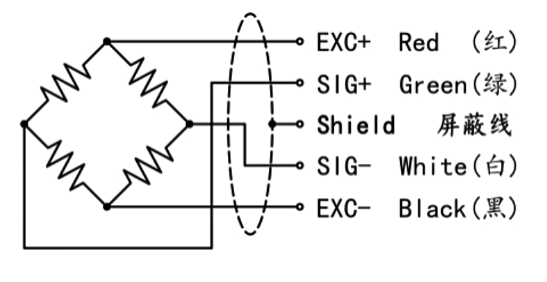 传感器接线示意图: 传感器受力图:
