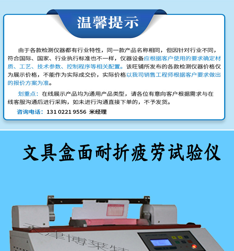 本机用于测试文具盒面反复 90 度开合耐疲劳度,经过测试一定的次数后,观察有否断裂之情形。