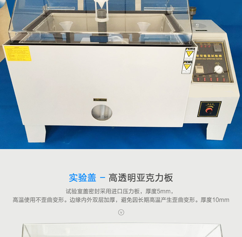 1、整台PVC板制,盐雾腐蚀实验机内部采用先进的立体补强技术,结构强实