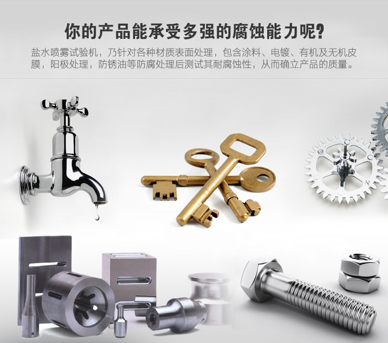 特点简介:本盐雾腐蚀实验机符合CNS、ASTM、JIS、ISO标准,盐雾试验乃针对各种材质之表面经涂料、电镀、阳极处理、防锈油等防腐蚀处理后,测试其制品之耐腐蚀性。