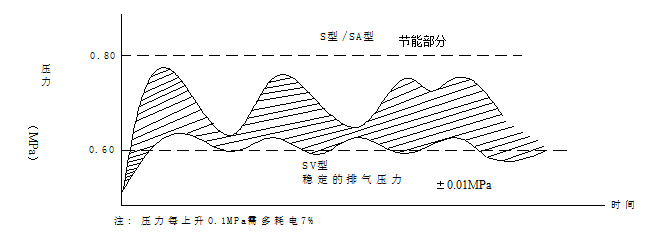 空压机采用节能改造前、后的压力控制对比及节能图标