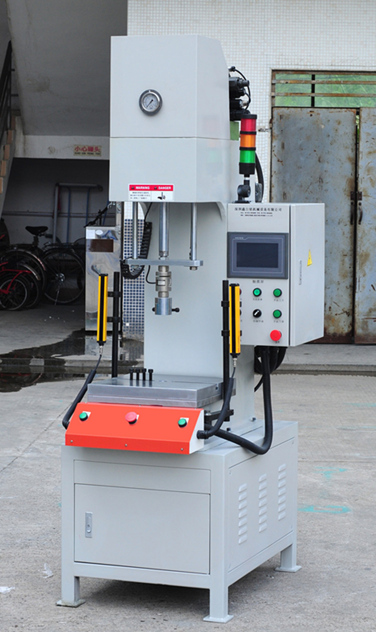 C型数控油压机 单柱精密油压机 宁波电机压装油压机C型油压机适用范围:金属或非金属零件压印、成型、浅拉深、整形及压力装配等;眼镜、锁具及五金零件的压制、电子接插件、电器零件、电机转、定子压装等。 C型油压机安全操作规程 :
