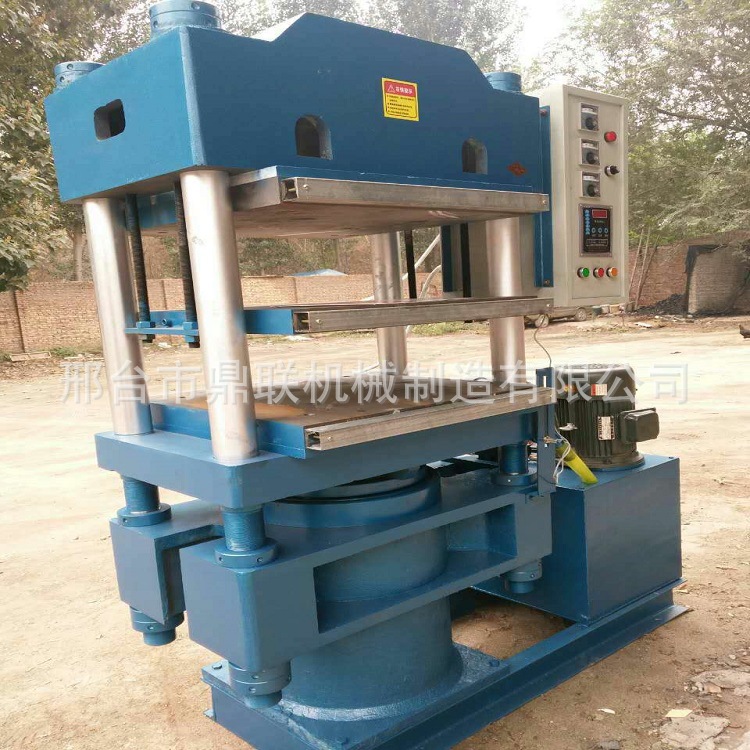 适用于压制各种模压制品,如压橡胶和塑料,也适用于薄片制品。本机床为四柱式整体结构,压制型式为下(向上)压式,分主机,油箱和电控箱三部分。主机装有柱 塞,油缸,固定平板,活动平板等部件。油箱有油泵,管道,阀等部件。油泵有电动机带动,电控箱装有按钮开关,磁力启动器,计时报警器,制动控温仪,过载保护器等。当电动机过载能自动切断电源,电加热由自动控温仪分三路控温,能在20-300度范围内任意调节,当达到温度后, 电路能自动保持恒温,达到设定的硫化时间后,自动报警,过程中自动排气,排气次数可设定,可自动进出磨具,自动开翻磨具。有广大客户需求的手动型、半自动型、全自动型。