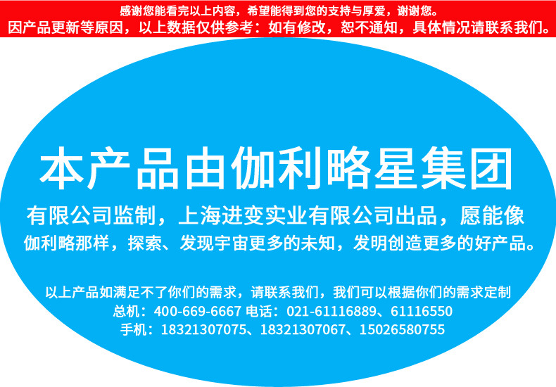 1.产品提供免费维修一年,免费维保期间内如发生非人为原因引起的损坏(不可抗力原因除外),上海进变实业将及时免费更换和修理。
