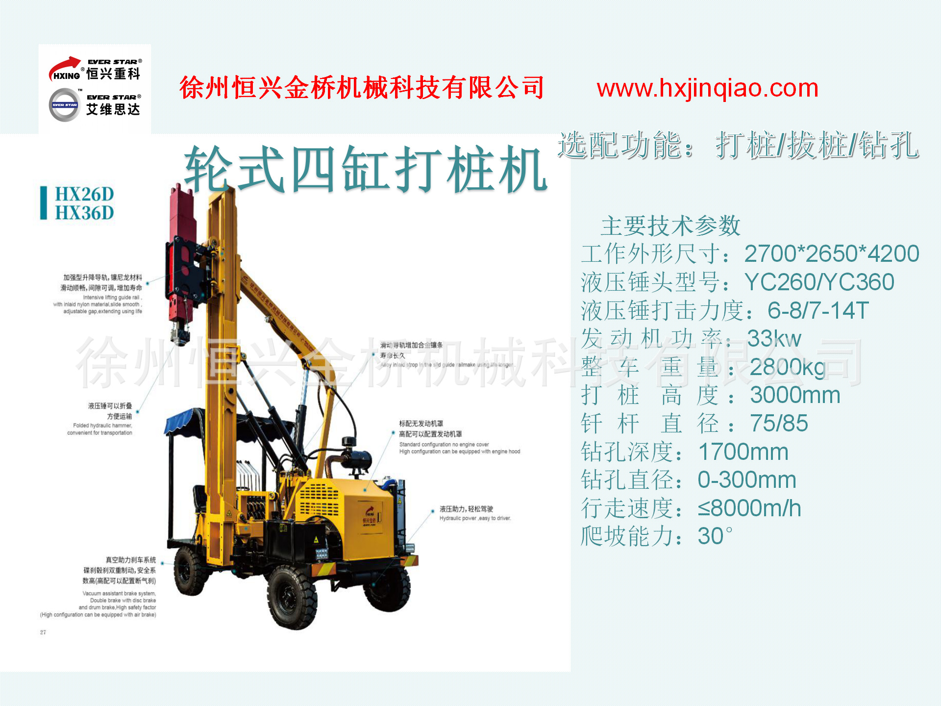 徐州恒兴金桥机械科技有限公司是国内从事护栏打桩机、钻孔机、拔桩机、光伏 桩机等装备的研发、生产、销售、出口及服务为一体的高新技术企业。(证书编号:GR201932010483)