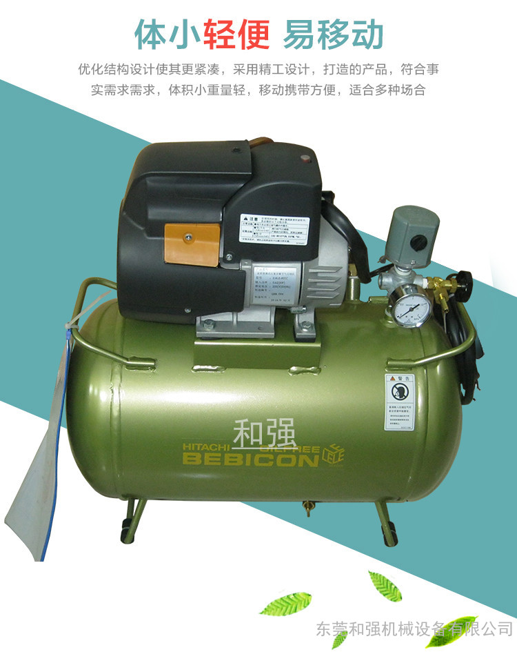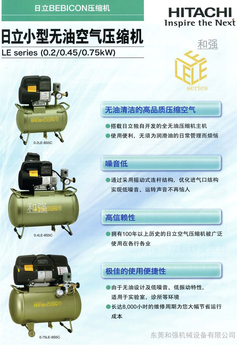 日立无油活塞式空压机 0.75LE-8S5C 开放式电动机 东莞代理商大量现货供应 排气量85L/min 0.75KW