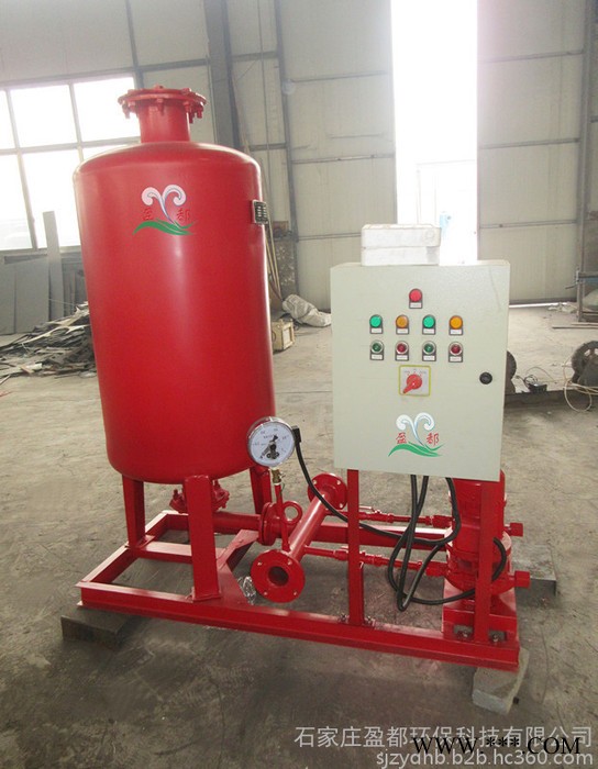消防气压供水设备,是利用无毒作为气水隔离的新型设备,一次冲气,常年运行使用。该设备有隔膜式气压罐、电控柜、稳压水泵及管道配件等组成。工作时启动补水泵,水室进水,水压升高,气室的气体被压缩,隔膜伸长;当水压下降时,气室气体膨胀,隔膜收缩,压迫水室出水。这样周而复始,通过电接压力表和电控柜控制水泵运行,达到额定压力和持续供水。当发生火警,打开消防栓时,立即喷出消防充实水柱,同时电接压力表发出信号,启动消防泵,供所需消防水。该设备设计合理,结构可靠、性能稳定。可在各消火栓系统,自动喷淋系统中配套使用,能满足消防实际需要.ydwf1