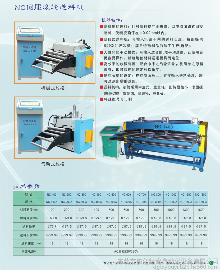 一、佑亿伺服送料机高精度的送料:针对高科技产业来临,采用日本原装进口伺服,以电脑闭路式回授控制,使精度确保在±0.02mm以内。