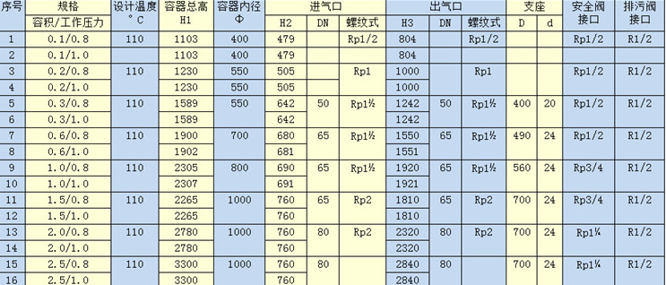 | 排气压力 | 0.8~1.6Mpa,2.5~4.0Mpa,4.0Mpa,-0.1Mpa |