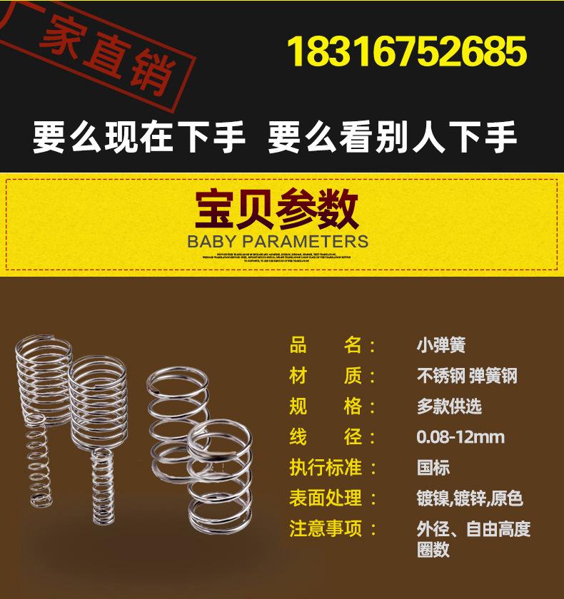 本网页所展示的有关【各种尺寸精密弹簧 探头304不锈钢镀金微型细小探针弹簧 东莞厂家_弹簧设备_深圳市龙华区汇博亿弹簧五金销售部】的信息/图片/参数等由弹簧网的会员【深圳市龙华区汇博亿弹簧五金销售部】提供,由弹簧网会员【深圳市龙华区汇博亿弹簧五金销售部】自行对信息/图片/参数等的真实性、准确性和合法性负责,本平台(本网站)仅提供展示服务,请谨慎交易,因交易而产生的法律关系及法律纠纷由您自行协商解决,本平台(本网站)对此不承担任何责任。您在本网页可以浏览【各种尺寸精密弹簧 探头304不锈钢镀金微型细小探针弹簧 东莞厂家_弹簧设备_深圳市龙华区汇博亿弹簧五金销售部】有关的信息/图片/价格等及提供【各种尺寸精密弹簧 探头304不锈钢镀金微型细小探针弹簧 东莞厂家_弹簧设备_深圳市龙华区汇博亿弹簧五金销售部】的商家公司简介、联系方式等信息。
