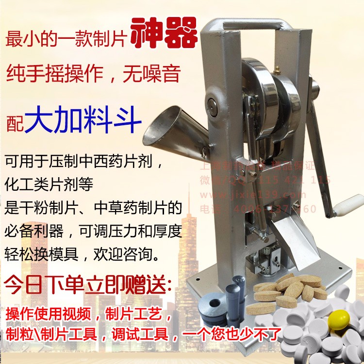 非常方便的干粉制片机器,可以把中草药等粉末快速打片,是实验,企业,诊所,家用**的药剂,全国包快运,购买改产品方便快捷。全国包邮,货到付款,欢迎您的咨询。