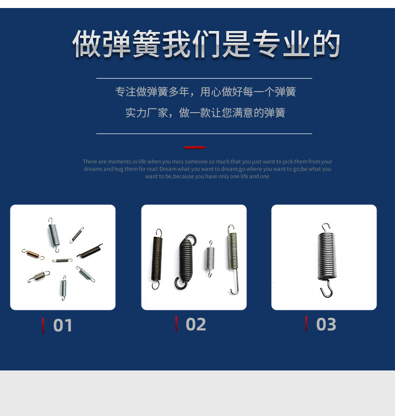 本网页所展示的有关【厂家直销定做拉伸弹簧不锈钢材弹簧定制异形弹簧耐磨金属拉伸弹簧_弹簧产品_温州市鹿城区鼓楼吕建虎五金弹簧店】的信息/图片/参数等由弹簧网的会员【温州市鹿城区鼓楼吕建虎五金弹簧店】提供,由弹簧网会员【温州市鹿城区鼓楼吕建虎五金弹簧店】自行对信息/图片/参数等的真实性、准确性和合法性负责,本平台(本网站)仅提供展示服务,请谨慎交易,因交易而产生的法律关系及法律纠纷由您自行协商解决,本平台(本网站)对此不承担任何责任。您在本网页可以浏览【厂家直销定做拉伸弹簧不锈钢材弹簧定制异形弹簧耐磨金属拉伸弹簧_弹簧产品_温州市鹿城区鼓楼吕建虎五金弹簧店】有关的信息/图片/价格等及提供【厂家直销定做拉伸弹簧不锈钢材弹簧定制异形弹簧耐磨金属拉伸弹簧_弹簧产品_温州市鹿城区鼓楼吕建虎五金弹簧店】的商家公司简介、联系方式等信息。