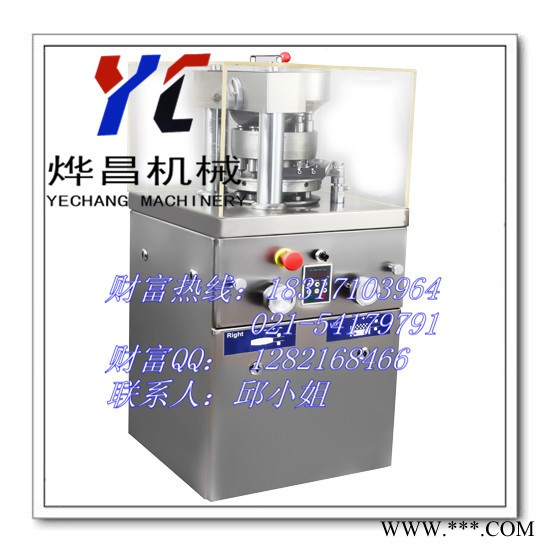 烨昌机械生产的小型旋转式压片机有ZP-5、ZP-7、ZP-9三种规格,分别有5、7、9副冲模,是目前国内重量**、体积最小的旋转式压片机。整机为不锈钢材料精密机加工制作而成,支撑架为铝合金材料,上、下可以独立拆开,便于运输。工作室由全透明有机玻璃罩密封,可有效防蚊虫、防尘,清洁、美观,工作情况一目了然,废料容易清洁,完全符合**GMP生产标准。清除残余药粉和废料时可以将玻璃罩移开,非常方便。