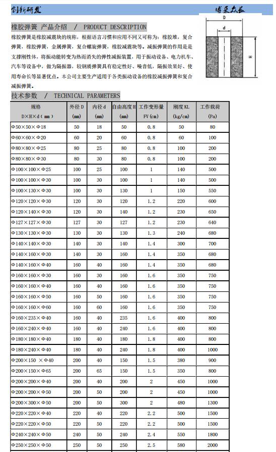 本网页所展示的有关【创博 橡胶弹簧 DN120x120xDN30橡胶弹簧价格 振动筛减震橡胶弹簧厂家价格_压缩弹簧_新乡市创博机械设备有限公司】的信息/图片/参数等由弹簧网的会员【新乡市创博机械设备有限公司】提供,由弹簧网会员【新乡市创博机械设备有限公司】自行对信息/图片/参数等的真实性、准确性和合法性负责,本平台(本网站)仅提供展示服务,请谨慎交易,因交易而产生的法律关系及法律纠纷由您自行协商解决,本平台(本网站)对此不承担任何责任。您在本网页可以浏览【创博 橡胶弹簧 DN120x120xDN30橡胶弹簧价格 振动筛减震橡胶弹簧厂家价格_压缩弹簧_新乡市创博机械设备有限公司】有关的信息/图片/价格等及提供【创博 橡胶弹簧 DN120x120xDN30橡胶弹簧价格 振动筛减震橡胶弹簧厂家价格_压缩弹簧_新乡市创博机械设备有限公司】的商家公司简介、联系方式等信息。