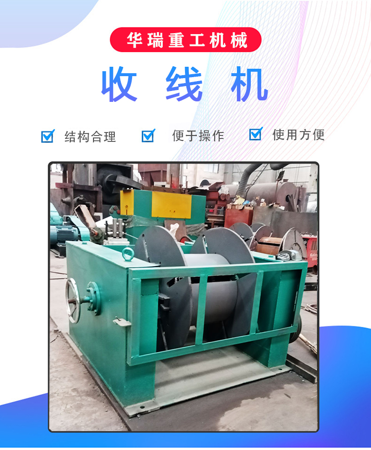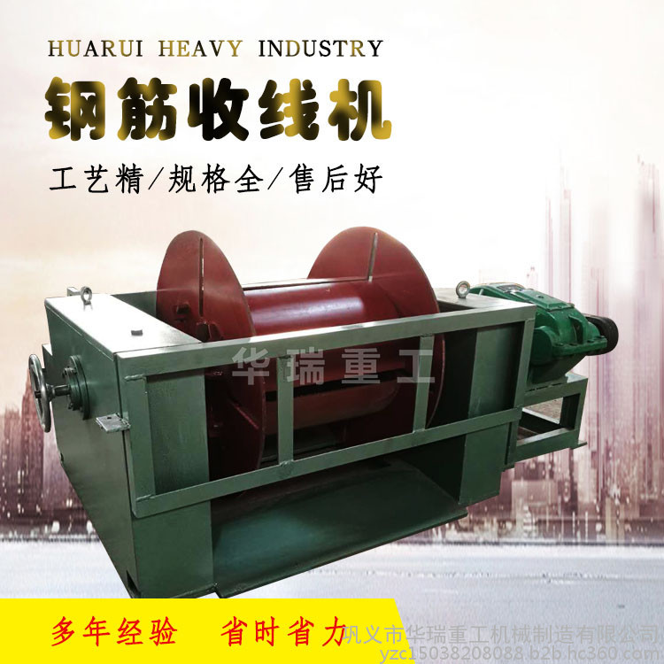 巩义市华瑞重工机械有限公司生产的钢筋收线机是将金属丝收卷在工字轮上,根据金属丝的材质和盘重的不同,工字轮的规格也不同,但工字轮收线机常常可以卷取大盘重的金属丝,可以承重650kg、1000kg、2000kg,适用于金属线材,铝材,铜线的收线打包。