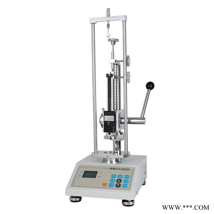 本试验机是测试拉伸和压缩弹簧的变形量和负荷关系特性的专用仪器。适用拉伸和压维弹簧的一定工作长度下的工作负荷测试,也可用手簧片、橡胶等弹性器件的弹力负荷测试。本试验机采用先进的、高集成的一体化单片机,和中文液晶显示,外型采用金属外壳,极大的提高了系统的抗干扰能力。
