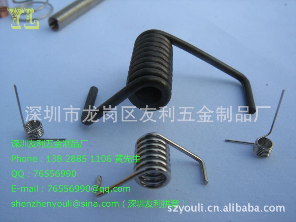 本厂(深圳友利五金制品厂)专业设计和制造扭转弹簧,材质可根据客户要求:碳钢线,琴钢丝,不锈钢线,铜线。产品广泛应用于家用电器、电子、电器开关、通讯、照/摄相器材、文具、渔具、办公用品及其它行业。欢迎广大客户来电来人洽谈。
