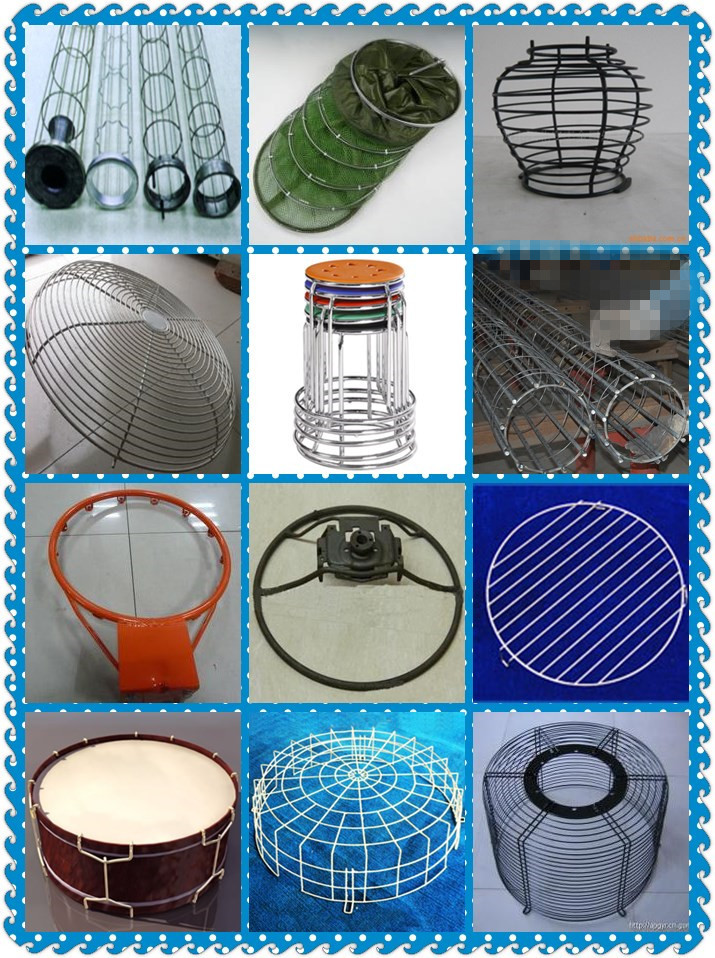 本机广泛适用于钢丝、铁线、不锈钢丝等各种金属线材(圆、扁、方、六角型等)的卷圆、半圆或任意角度(同心角)的圆弧,配以专用的模具及可调压轮还可制作方形、椭圆形工件;非圆形截面的线材、板材只需更换调线轮,送线轮,压线轮及切刀即可加工。是水泥电杆、钢筋凳、矿用风筒、环保除尘骨架、风扇网罩、汽车方向盘、童车车轮、灯罩、工艺品、花盆架、箱包扣件、日用五金厨具(如炉架、酒/杯架)等行业提高产品质量、降低生产成本、提升生产能力的首选设备。