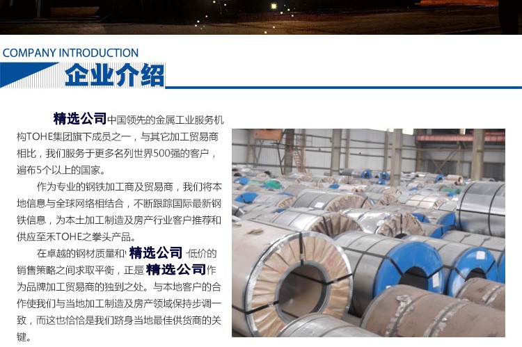 | 加工服务 | 深加工(冲压、折弯等),定制样品,粗加工(开平、分条等) |