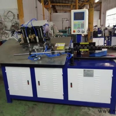 该全自动打圈焊接一体机由:1,钢丝调直机构, 2,钢丝长度精密检测机构,3,钢丝牵引机构, 4,打圈成形机构, 5,打圈切断两端对焊机构及 6,控制这些机构协调工作的控制系统等共6大部分构成.