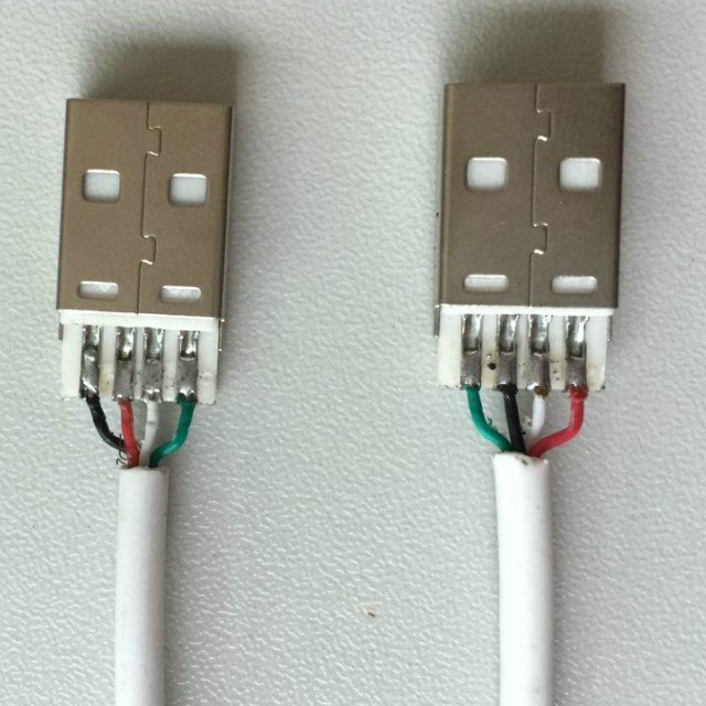 ?焊接5pin micro USB与线材之间共4个焊点(尾端);