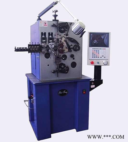 重量:800kg 2 、机械特点及功能: 一、采购用台湾进口电脑控制系统和进口伺服电机; 二、 电脑为中文介面,易操作,定位准确,电脑可控制三至八个伺服电机,所有电机可同步或单独运行; 三、 设有精度检测跟踪装制,如有不合格的产品能够自动停机; 四、 根据荧光屏上的工作情况,可以随时对产品的外径角度等进行修正; 五、 机械自动件自动润滑供油设计,保证设备的长时间运行; 六、 当无线、断线、缠线时自动停机设计及线架自动加速功能,令生产更轻松有效; 七、 适用于生产、直形簧、宝塔簧、拉簧、压簧、钢皮涡簧、及各种花式簧、复杂高难度异型簧,等。