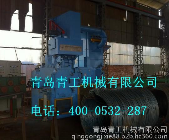 螺纹钢除锈机主要用于钢材市场,建筑与桥梁制造业。为保证对清理工件的严格要求,我们在本机方案和设计中采用下述关键技术及保证措施:1、抛丸器的布置采用计算机仿真设计,多角度、全方位抛打工件,使弹丸覆盖率均匀一致采用瑞士DISA公司技术生产的QH034-30型电机直联传动高效抛丸器,能显著地提高清理效率、获得满意的清理质量且有效避免弹丸阻塞耐烧毁电机的情况发生。2、分离装置采用目前**进的溢流感应、满幕帘流幕式丸渣分离器,分离效率可达99.9%。提升机防逆转采用双保险设计:一是传动头轮采用棘轮棘爪机构防止逆转,二是传动电机采用制动电机防逆转。同时在被动轮处设有丢转检测报警装置。3、工件检测装置,有效控制抛丸器开、停时间,避免抛丸器无效空抛,节约能源,提高室体护板、抛丸器等易损件寿命本机设有故障自动检测、报警,报警后延时自动停车等功能 对工件上积存的弹丸,采用高压风机吹丸的方式及人工手动清丸。4、采用高效滤筒除尘器,粉尘排放50mg/m3以内,改善了工人操作环境。5、 输送辊道采用变频调速,可随时调节清理速度0.5-2m/min,以达到理想的抛丸除锈效果(Sa2.5级)6、抛丸室体采用12mm厚钢板焊接而成箱型结构,强度高而不会产生振动。内部采用冷轧Mn13板防护,寿命可达12000小时以上(单班8年以上)。 室体内辊道采用高铬钼特铁防护套经过加工后热处理而成,有效的延长了使用寿命,降低了维修率。两端轴承采用迷宫式防护,杜绝了灰尘及破碎弹丸的侵入,提高了轴承的使用寿命。7、除尘系统采用旋风+滤筒除尘器,除尘器除尘效率达到99.9%以上,除尘效果符合《大气污染物综合排放标准》要求。除尘器下部接有套有回收袋的小车,便于灰尘排放。灰尘排放风管高度≥16米。钢筋除锈机工作原理:辊道通过式除锈机,清理过程中由电气控制的可调速输送辊道将送螺纹钢进清理机室体内抛射区,其周身各面受到来自不同坐标方位的强力密集弹丸打击与磨擦,使之其上的氧化皮、锈层及其污物迅速脱落,钢材表面**获得一定粗糙度的光洁表面,在清理室外两边进出口辊道装卸工件。落入钢材上面的弹丸与锈尘经吹扫装置吹扫,撒落下来的丸尘混合物由回收螺旋输送到室体漏斗、纵横向螺旋输送机汇集于提升机下部,再提升到机器上部的分离器里,分离后的纯净弹丸落入分离器料斗中内,供抛丸循环使用。抛丸清理中产生尘埃,由抽风管送向除尘系统,净化处理后的净气排放到大气中,颗粒状尘埃被捕捉收集.连续式直通圆钢抛丸机常见的有1根、5根、l5根、68根**100根。为了保证清除铁皮的效果,一般配置3~6个抛射装置,这些抛丸轮配置在线材的上部或下部,可纵向抛射,也可横向喷射,抛出的丸粒扇面要覆盖线材通过的整个宽度。