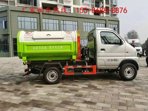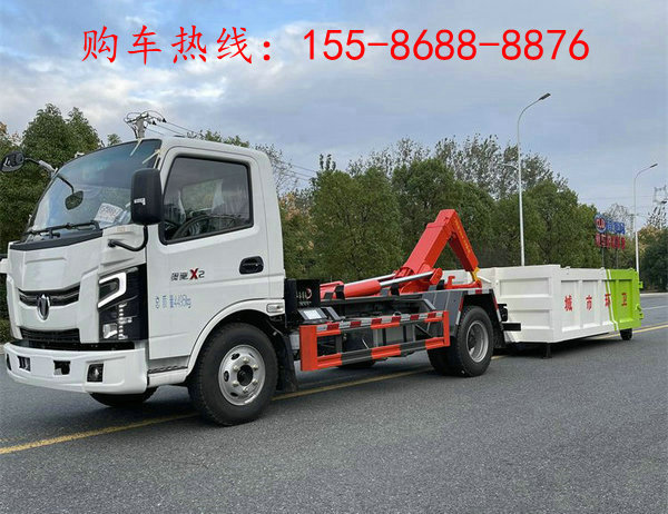 前四后八勾臂式垃圾车车厢可卸载式垃圾车,又称勾臂式垃圾车、拉臂式垃圾车。该车广泛适用与城市街道学校垃圾处理,可一车配备多个移动压缩垃圾站,各个垃圾点放置多个,带自卸功能,液压操作,方便倾倒。在平日里可将车载垃圾箱放置到各个垃圾收集站,待垃圾收集满后,该车可直接开赴至垃圾站,通过液压系统的操控,可将垃圾车后座上加装的勾臂放下,挂住站内垃圾箱前端的连接点,将垃圾箱拉至车体的后座上,此时即可启动车辆,将垃圾运送至垃圾处理站内,进行自卸式倾倒。