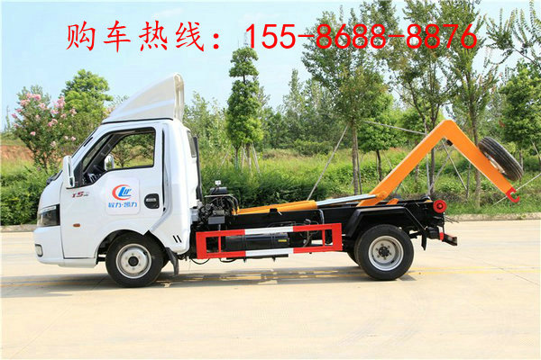 勾臂垃圾车的特点是垃圾箱与车体分开,实现一车与多个垃圾箱的联合使用,循环运输,特别适用于短途运输,如环卫部门对城镇垃圾的清理、运输等,该车采用高新设计可摆动的勾臂,实现车厢的二次吊装,并使机构为胜利,结构简单,操作稳定方便,装卸效率高,机械化程度高,节省人力,一车可带多个大厢,在装卸的运输过程中可有效地避免二次污染,改装部分与原车底盘为可分离式,维修方便且保持了原车的机动性及行驶性能。