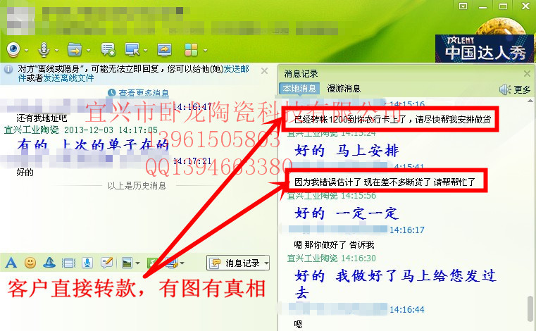 和客户的聊天记录能解除您心中的担忧,疑虑。