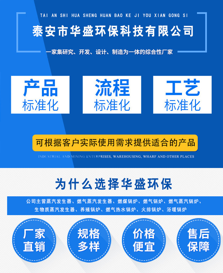 泰安市华盛环保科技有限公司座落在闻名中外的世界自然文化遗产--泰山脚下.南临孔子故里旅游胜地--曲阜及水浒梁山.北依国内名寺--灵岩寺,靠京沪铁路、京沪高速公路、104国道,交通便利,一年一度的国际登山节(9月6日),吸引了众多的海内外国际友人。 泰安市华盛环保科技有限公司销售立式蒸汽锅炉、常压蒸汽锅炉、燃煤蒸汽锅炉、常压热水锅炉、取暖锅炉、燃气锅炉、环保锅炉、小型立式锅炉、锅炉辅机、除尘器等产品。