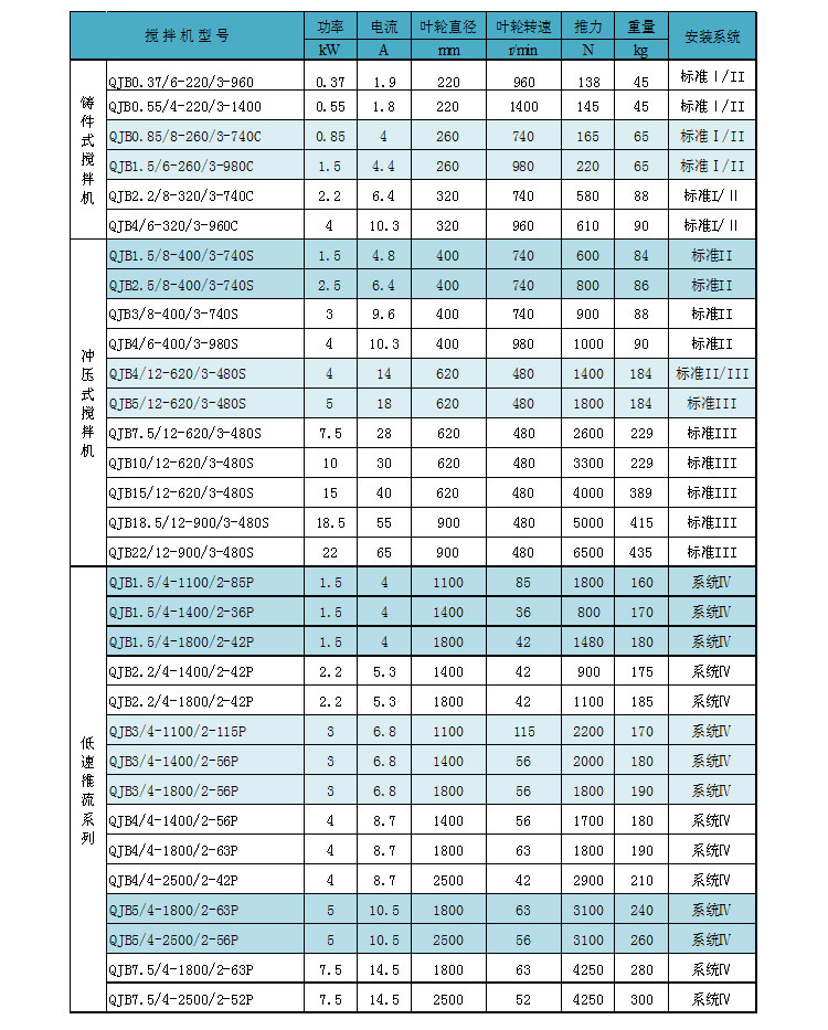产品简介: 潜水搅拌机是经过如克多年的实践摸索,因其在形式、结构和试验方法上的创新,使得潜水搅拌机总体性能达到较好价比,提升对污水混合效果,主要用于污水处理厂的工艺流程中推进搅拌含有悬浮物的污水、稀泥浆、工业过程液体等,创建水流,加强搅拌功能,防止污泥沉淀,是市政和工业污水处理工艺流程上固、液、气三相介质均匀混合反应的设备。 QJB 型潜水搅拌机可分为混合搅拌和低速推流两大系列。 混合系列搅拌机适用于污水处理厂和工业流程中搅拌曝气池和厌氧池,可用池中水循环、悬浮物及硝化、脱氮和除磷阶段创建水流; 低速推流系列搅拌机适用于工业和城市污水处理厂曝气池,其产生低切向流的强力水流,可用于循环及硝化、脱氮和除磷阶段创建水流等。