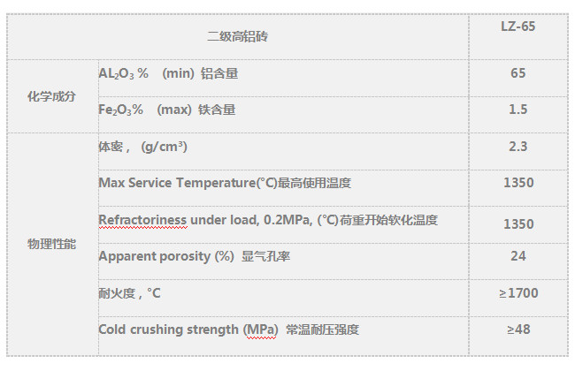 二级高铝耐火砖是指三氧化二铝含量不低于65%的一种硅酸铝质耐火材料。由矾土或其他氧化铝含量较高的原料经成型和煅烧而成。
