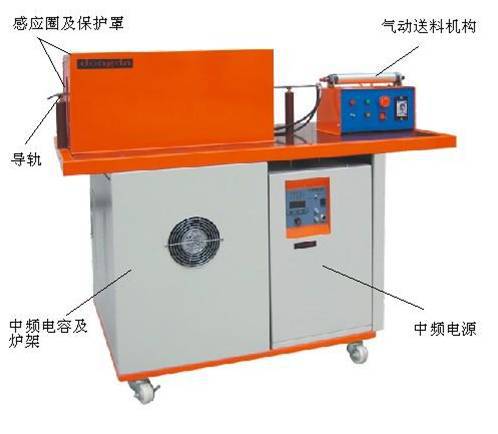 包括中频电源、补偿电容箱及工作台、感应圈、送料机构等。根据不同的应用要求,还可能包括红外测温仪,控温仪及送料、卷料等装置;
